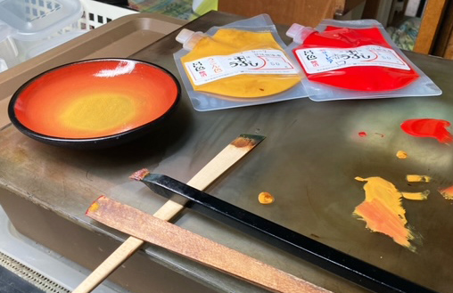 現在、輪島の仮設中浦屋ストアにて漆のクラフトを並べてもらったり、少しずつ公募展に向けての制作もしています。